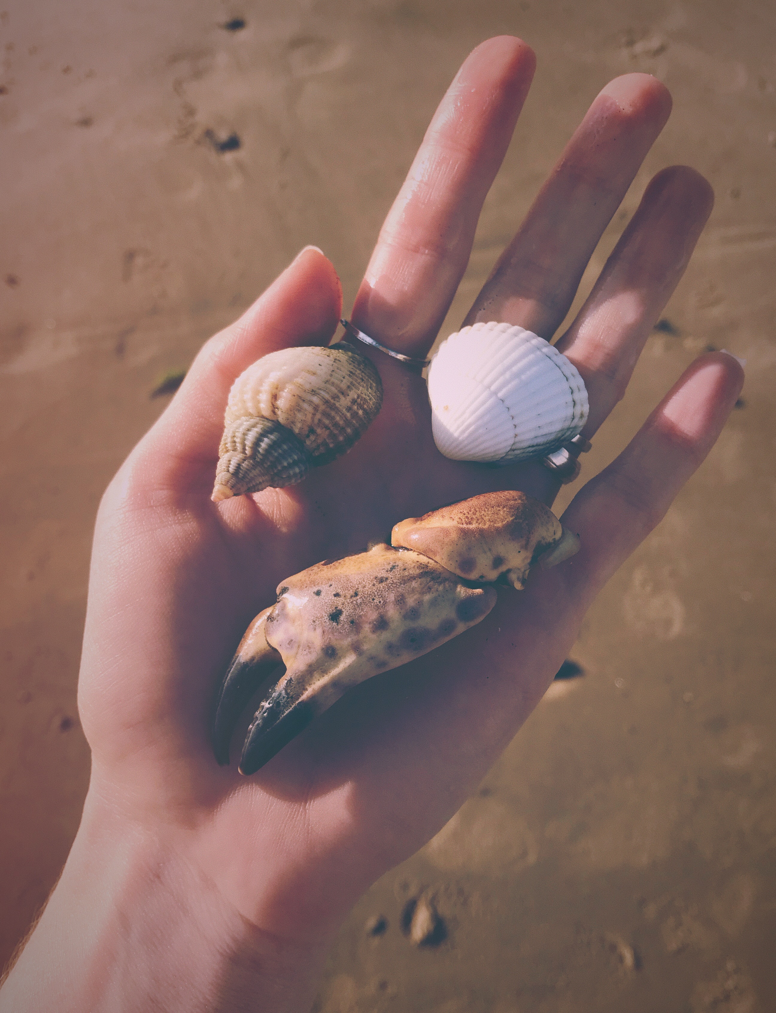 The following day was the same apart from it was raining so I sat and wrote for hours and hours then about 4pm it just went boiling. I bundled myself into the car and drove to another incredible beach, Saundersfoot and took a stroll through the waves up and down the beach. I found some beach treasures, perfect shells and crabs’ claw. I lifted my head into the golden sunshine and basked like a lizard. I treated myself to a portion of chips and a doughnut made fresh for me because I just wanted one rather than a bag of four. I ate my dinner in the garden, watched another movie and had yet again another glorious undisturbed sleep.